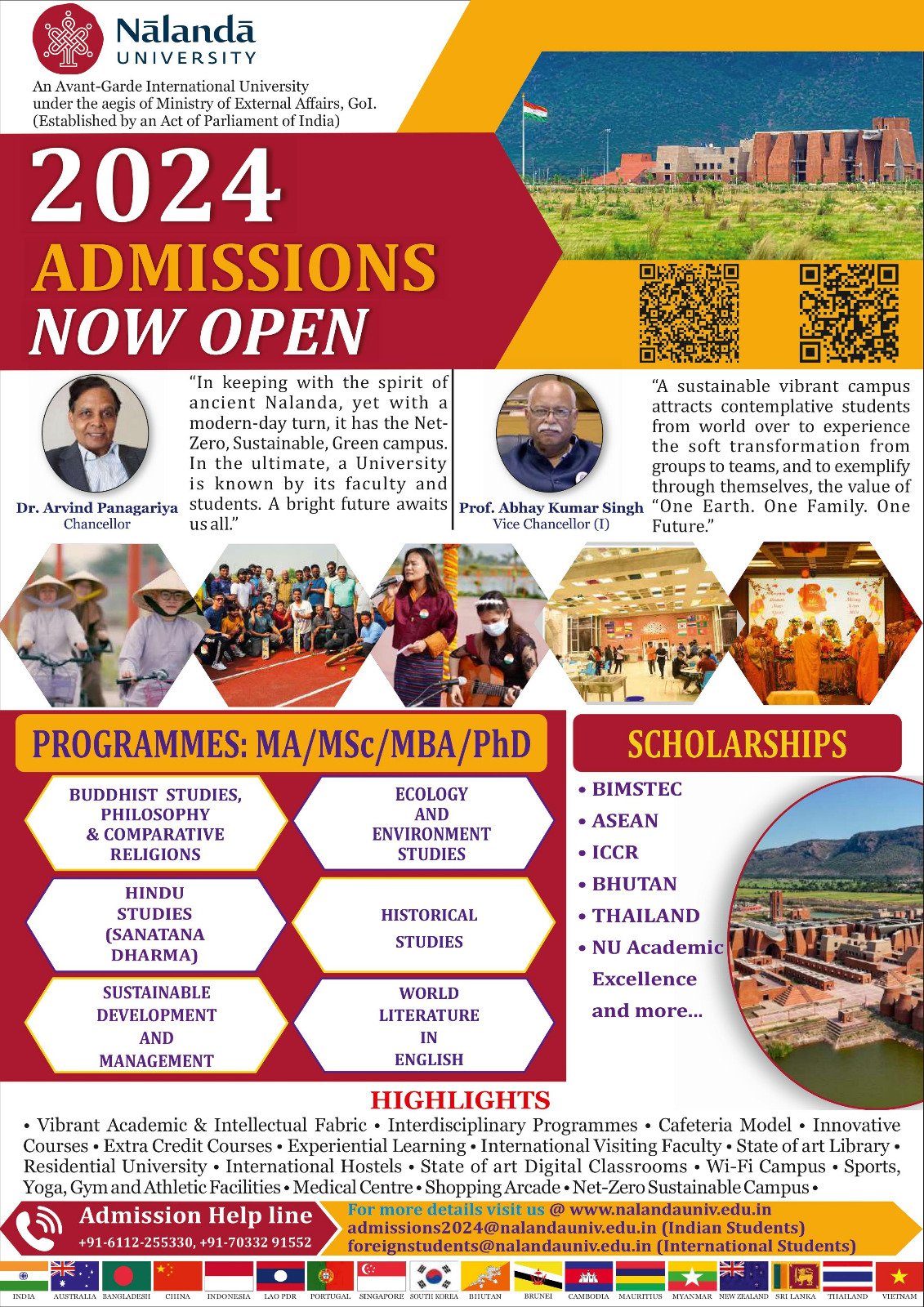 Nalanda University offers post-graduation programs for the academic year 2024-2026