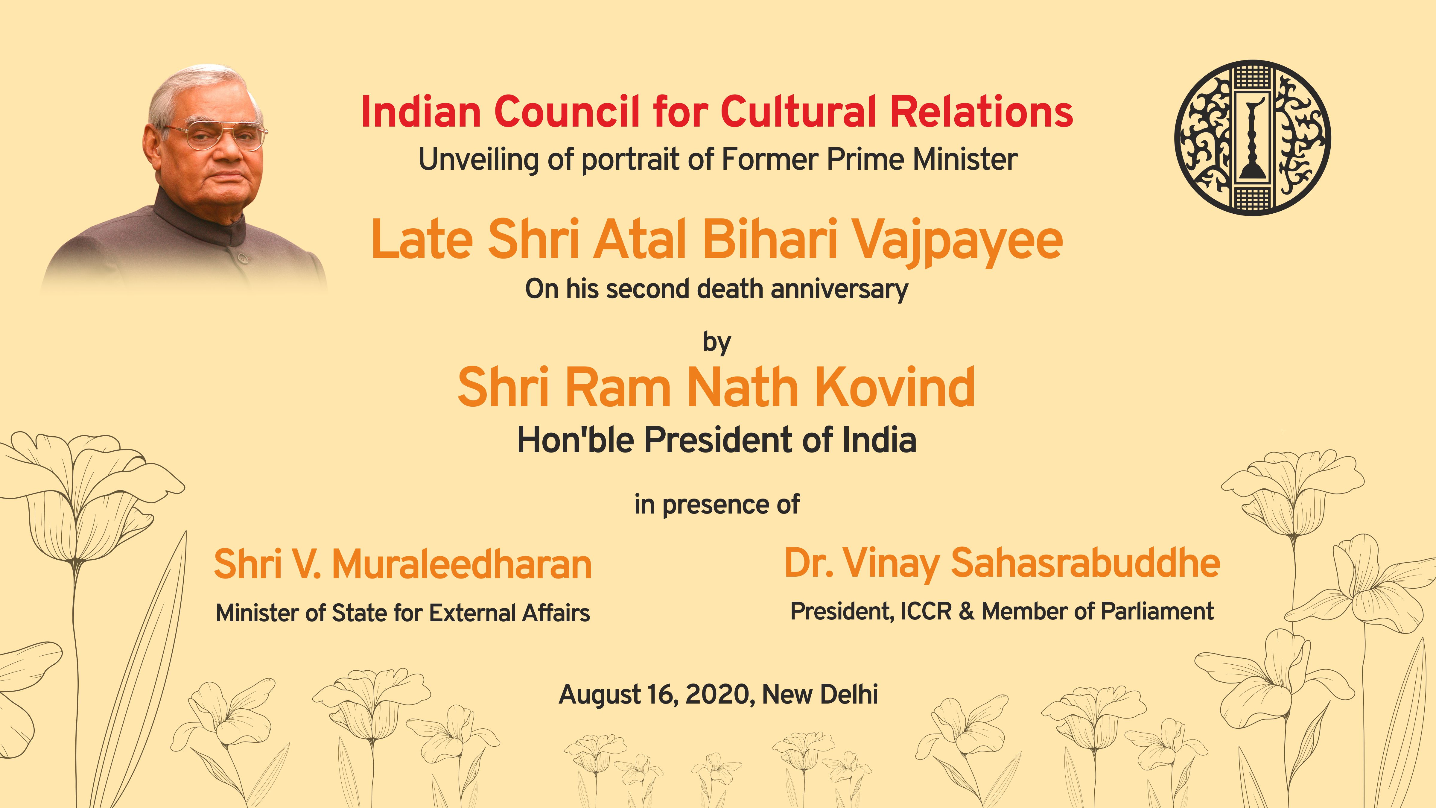 ICCR is organizing an event in the memory of late Shri Atal Bihari Vajpayee ji, former Prime Minister of India on 16 August, 2020 by unveiling Shri Vajpayee’s portrait at ICCR premises. The event is being organized on Shri Atal Bihari Vajpayee ji’s 2nd death anniversary remembering him and his contributions towards the building of Nation.