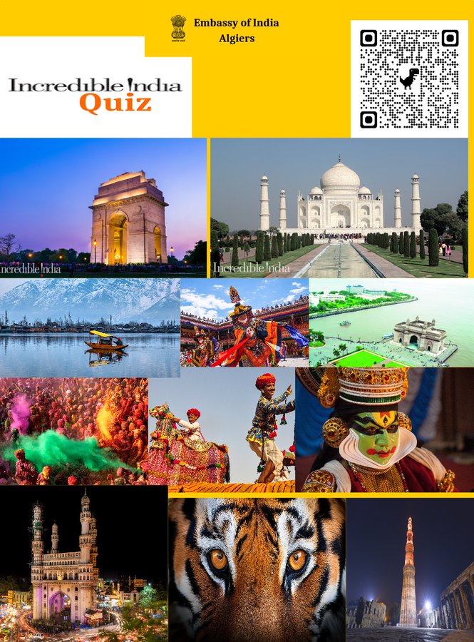 Inviting Algerian nationals to take this Incredible India Quiz and test their knowledge of Indian cities, tourist sites, monuments, cuisine, art and culture.