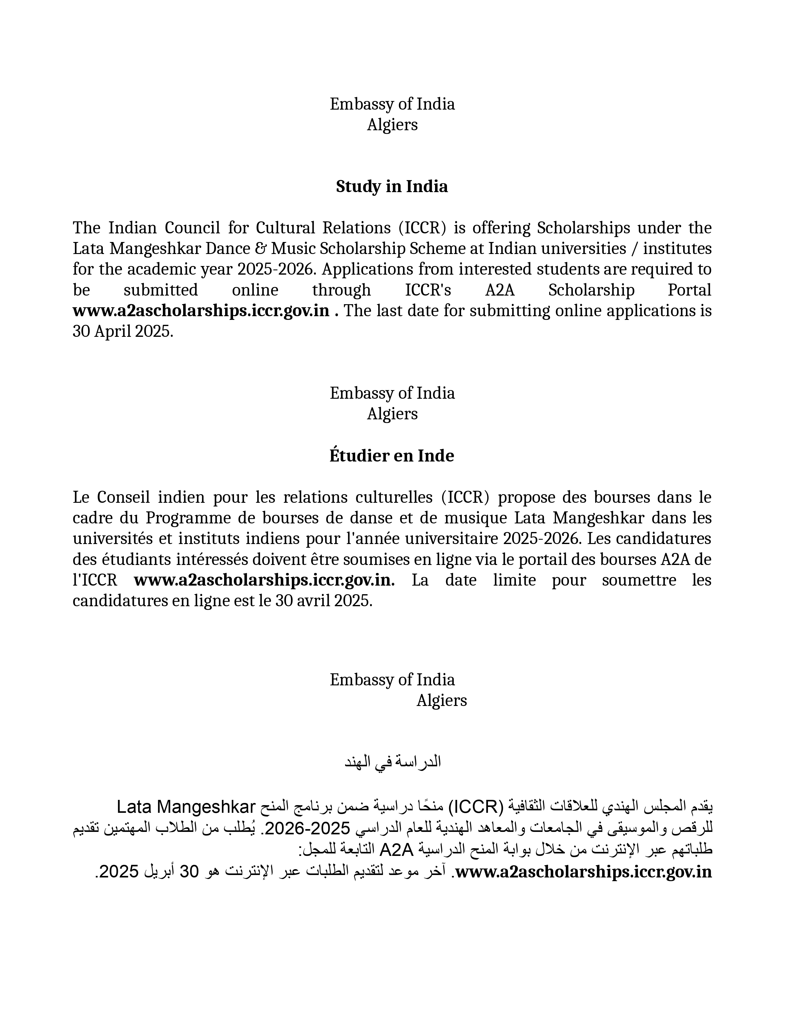Lata Mangeshkar Dance & Music Scholarships by ICCR for 2025-2026