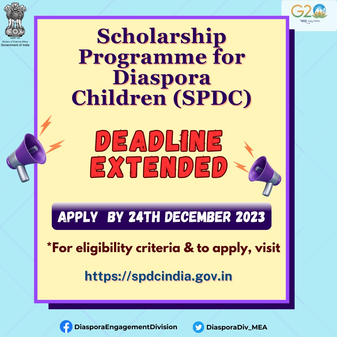 Scholarship Programme for Diaspora Children-extension of deadline till 24 December 2023