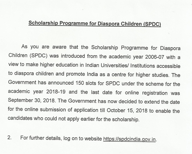 Scholarship Programme for Diaspora Children (SPDC)